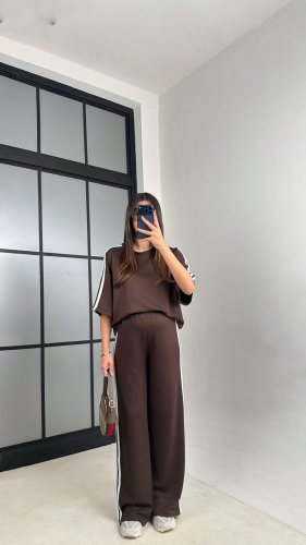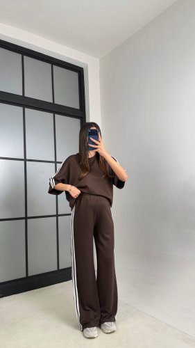 • Kadın yarasa kol yanları şerit detay modal kumaş ikili takım