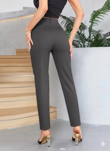 • Bordo Renk Yüksek Bel Maskülen Kesim Kumaş Pantolon