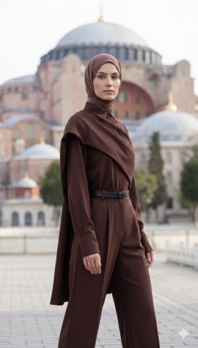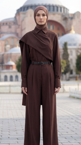 • Kadın uzun kollu şal detaylı bluz ve pantolon kemer dahil ikili takım