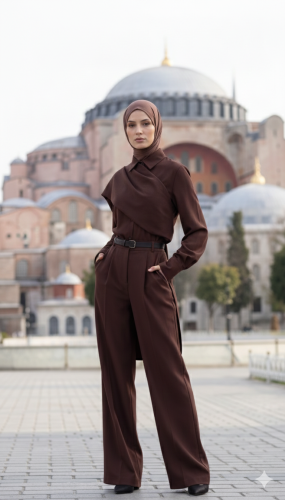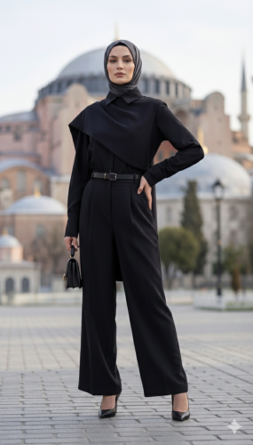 Kadın uzun kollu şal detaylı bluz ve pantolon kemer dahil ikili takım